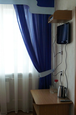Во всех комнатах сделан ремонт в стиле модерн. В каждом номере: телевизор, сан. узел, шкаф-купе, зеркала, белье, полотенца. В гостинице работают: терминал, кафе.